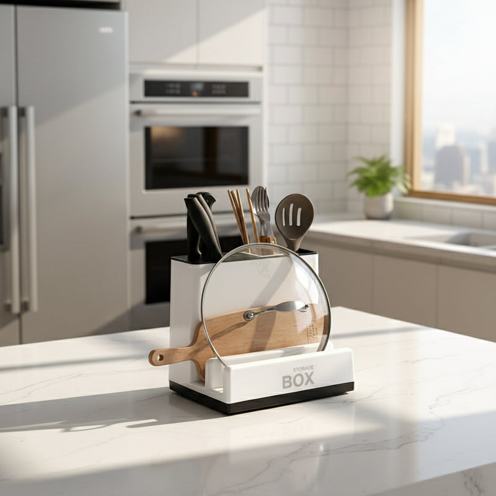 Streamline your kitchen with this smart, space-saving plastic rack designed to store knives, utensils, plates, and everyday tableware — all in one sleek, compact organizer.